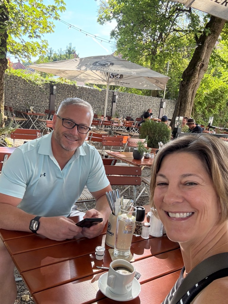 Today we had late checkout just in case we got too tore up at Oktoberfest. It was not needed fortunately. Finding a breakfast joint n Europe is no easy task. I think they live on coffee, bread and cigarettes as that is readily available. We ended up finding a “cute” cafe and had eggs, potato’s and bacon. Something that we have not seen for 2 weeks.