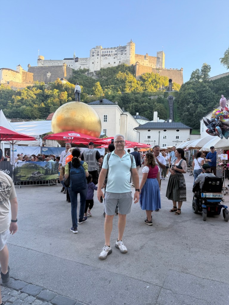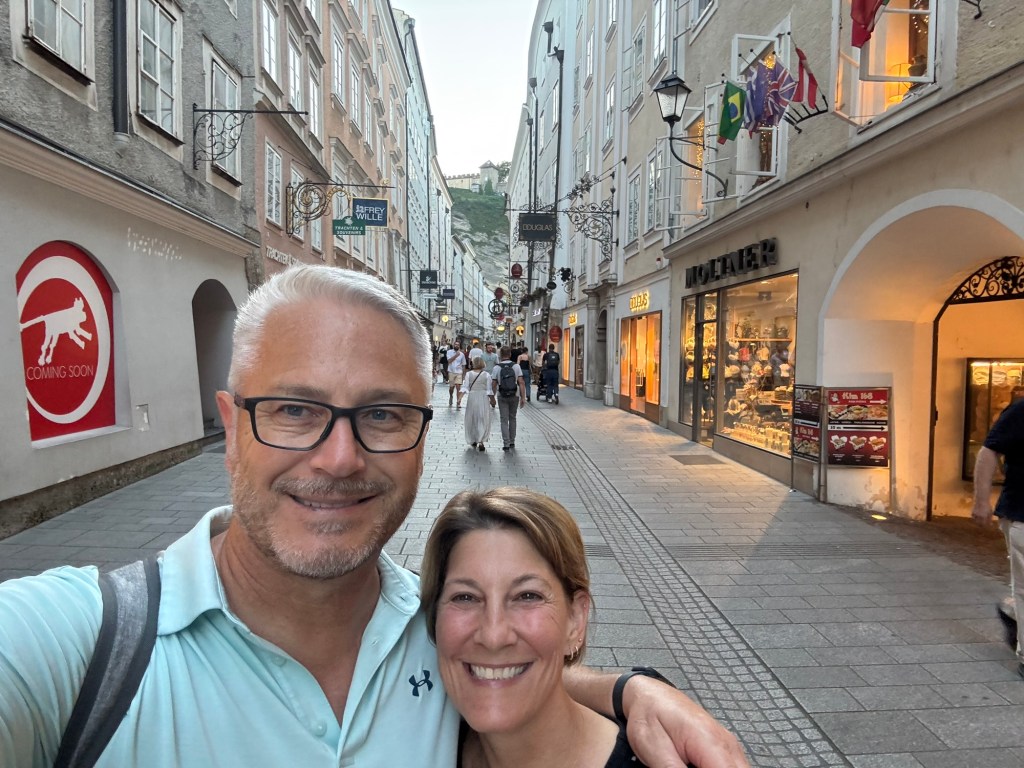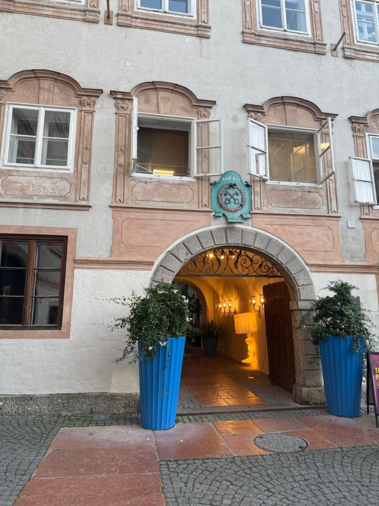 We arrived in Salzburg, Austria, walked out of the train station and our hotel was about 50 yards away. Nice work Lori!