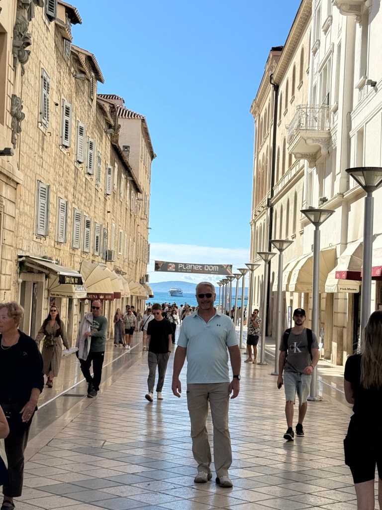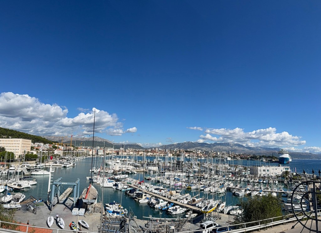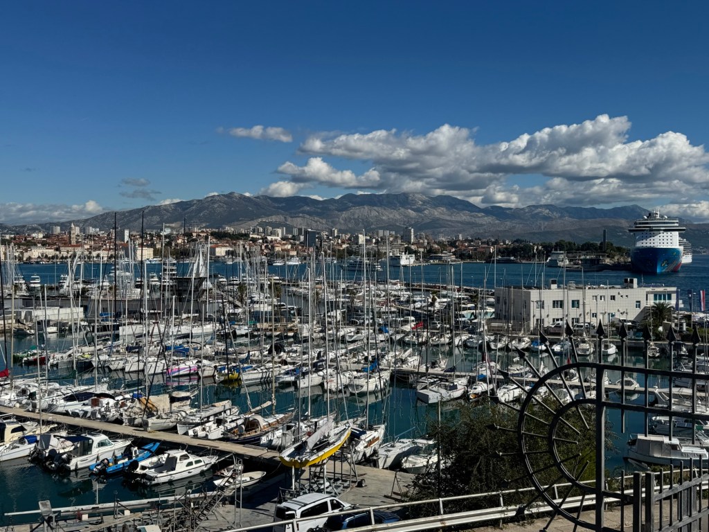 Split was about a 30 minute drive so Lori started looking for things to do before our ferry trip to Hvar. We arrived in Split and found that it was a pretty big city. There were massive cruise ships in the harbor as well as tourist shops everywhere. It had the feeling of a tourist trap and they were busy with cruise crowds. This is something that Lori hates, crowds and tourist shops.