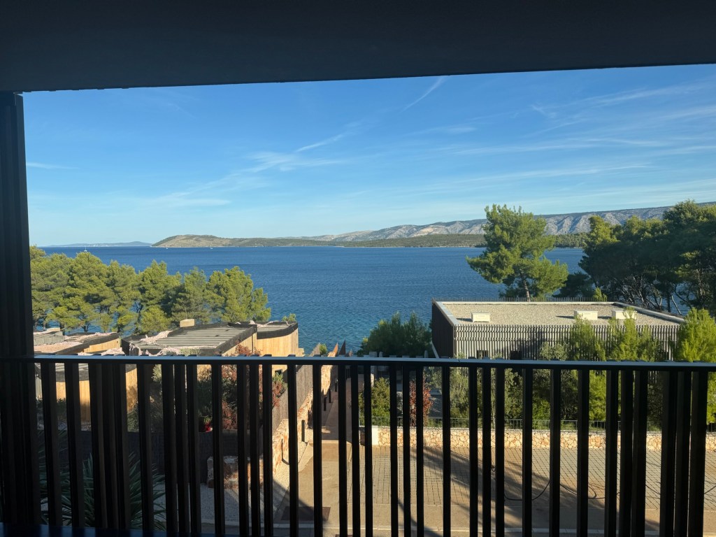 The hotel was about 5min drive from the dock. I dropped off Lori to get first in line and the check in desk. I parked the car and hoofed the luggage to the reception desk. I had to dodge bell hops trying to help me because all that spells is T.I.P. I made it to reception to have another guy ask me if I wanted to check in. I looked around and saw Lori sitting in the bar enjoying a drink. I told the guy “I don’t know why my wife is sitting there but I will get her”. Lori sashays in and checks us in. She told me that a different receptionist offered a welcome drink while she did the check in. This is a 5 star resort called the Maslina Resort. Lori reserved this with points from her credit card. We get a free room upgrade, $100 euro resort credit and free breakfast. Lori reminded the hostess of the room upgrade right when she arrived at the reception desk. Now it was time to see the upgrade. The hostess made me leave my luggage which is something that I never do and led us to our room. It was nice with a partial view of the Sea. The girl asked if we would like her to show us around the room? I looked around as it was your basic hotel room and I responded “I think we can see it fine, thank you”. Lori, in a convincing tone conveniently stated “this is not an upgraded room” just as the hostess left the room. A little embarrassing for me but Lori knows what she is doing. I started to unpack and within 10 min we received a call from the front desk that they were going to try and upgrade us by moving some things around. Yup, start packing everything back up and waited for the call. The next room was a full view of the sea and a much larger room. She did it again!