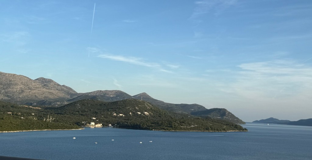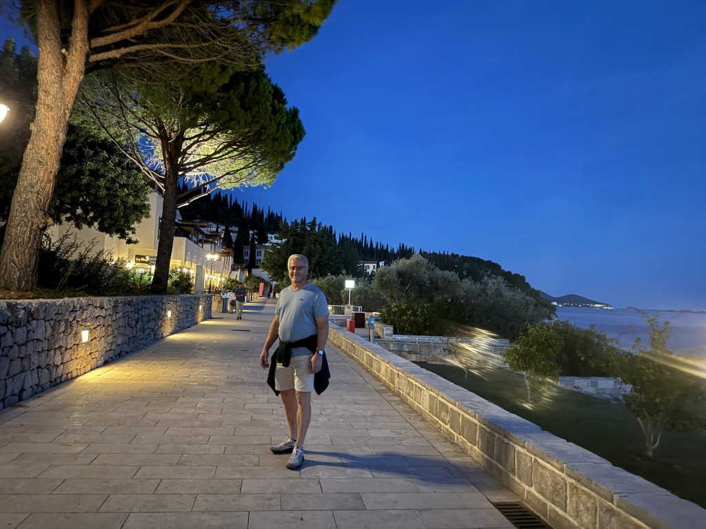We walked around the resort where there are 4 restaurants and found one to sit at along the shore. The waiter made us feel like we were royalty and suggested some red wine which we ended up finishing the bottle. As we enjoyed our wine we discussed the next stop. We decided to stay here for another 4 days (6 total) then fly to Bari, Italy. That way we can take another break and spend some time exploring Dubrovnik and enjoy the resort.
