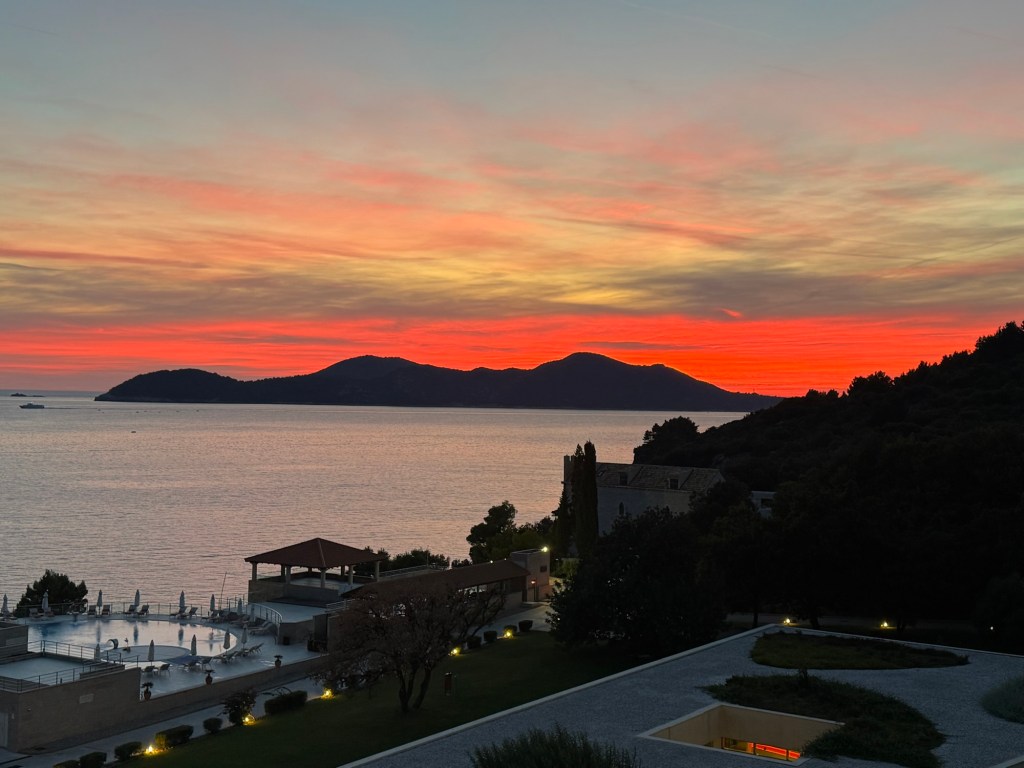 The receptionist was really impressive and set Lori up with an impressive sea view room. We can watch the sunset and still see Dubrovnik castle from our room which is a 25 minutes down the shore line.