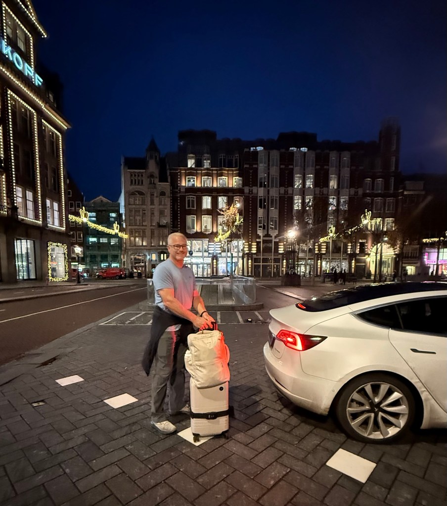 We made it to the pick up spot just as the Uber pulled up. It must have been early for him because he did not get out of the car or pop the trunk. Usually they get out and help you. I guess there is a first time for everything. I figured out how to open the trunk and loaded our luggage. It was about a 40min ride to the airport. Lori found a step by step check in procedure online on how to go through the Amsterdam (AMS) airport. It is a little different procedure when you are checking in while flying standby. Since KLM handles the Delta flights out of AMS it can be a little tricky. It is not at all like it is in the US. It is actually a much easier process in other countries. AMS is very organized when going through TSA and Passport checks. If only the US could learn something from these other countries.