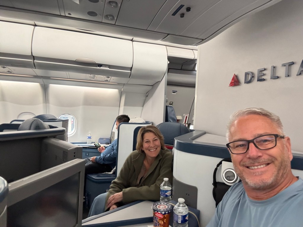 We checked in at the gate and hoped that we would get good seat assignments. The Delta site showed 17 open spots in Delta One (First Class with individual cubicles) we were #12 and #13 on the stand by list. This was a good sign but there are always unknowns. There could be payload optimized flights so they may not fill all the seats. There is also the chance that some last minute stand by’s may jump on the list when they see that many vacancies.