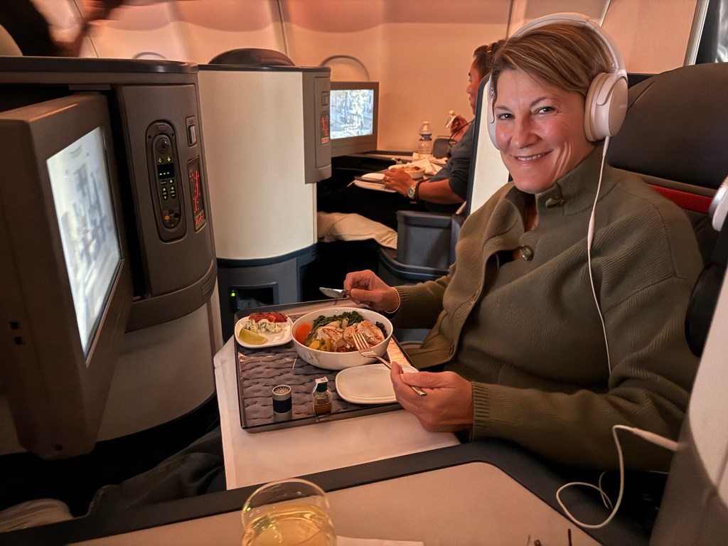 We approached the gate agent and asked if there was room and if we could move from a later flight. She had a great can-do attitude and looked for seats for us while she checked in passengers. She was able to switch our flight and ended up putting us in the front row of First Class, together. What a great way to end our trip in luxury.